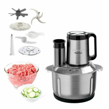 Le Hachoir Électrique Multifonctionnel 3L 4 en 1 est un appareil de cuisine puissant et polyvalent, idéal pour hacher, mixer, broyer et mélanger une grande variété d’aliments. Grâce à son bol en acier inoxydable de 3 litres et à ses lames tranchantes en acier, il permet de traiter efficacement viandes, légumes, fruits, noix et même glace. Doté d’un moteur performant, il garantit une préparation rapide et homogène, tout en assurant une utilisation sécurisée grâce à son système antidérapant. Compact et facile à nettoyer, ce hachoir est un allié pratique pour gagner du temps en cuisine au quotidien.
