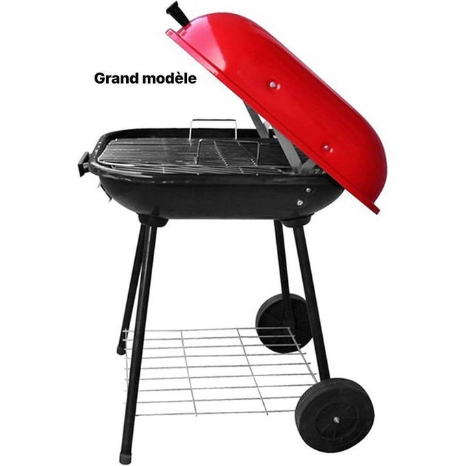 Barbecue – En Acier – Avec 2 Roues – Noir-Rouge