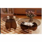 Ensemble Table Basse 2 Pièces En Verre Support En Bois Massif