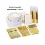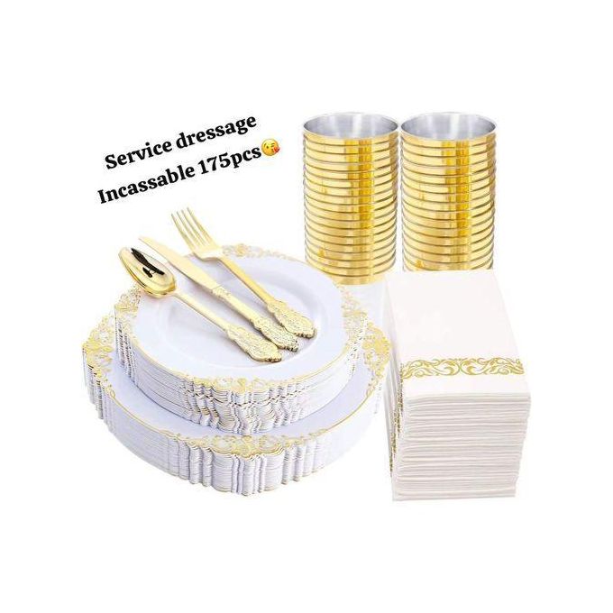 Lot de couvert doré : 175 Pieces Assiette en melamine + fourchette , couteaux , grands cuilliere petites cuillieres