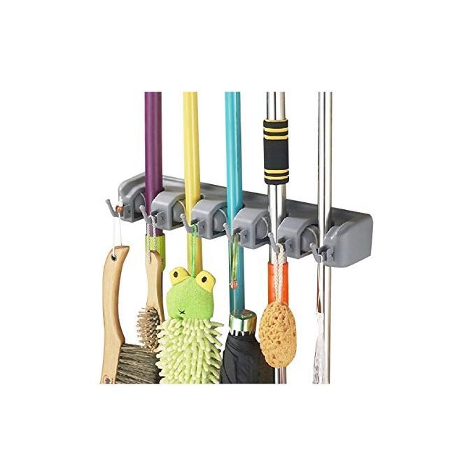 Support de rangement mural pour support de rangement pour organisateur de balai, (5 positions et 6 crochets)