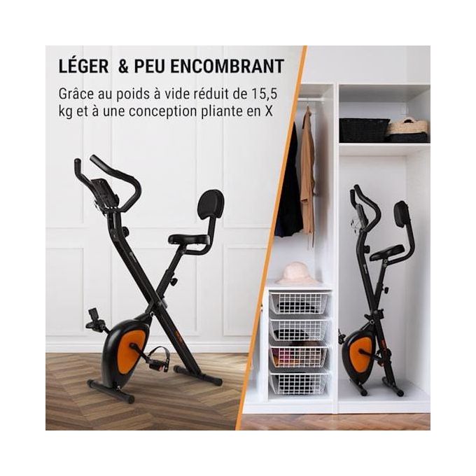 Conçu pour une expérience de conduite personnalisée, ce vélo d’exercice offre une résistance de 8 niveaux prédéfinis. Que vous soyez un débutant ou un expert, il est facile pour l’utilisateur de trouver une intensité d’exercice idéale. Avec une roue d’inertie de 2,5 kg pour une conduite stable et douce tout en garantissant la sécurité. Taille totale : 41 x 77 x 119cm. Taille pliée : 41 x 42 x 135cm