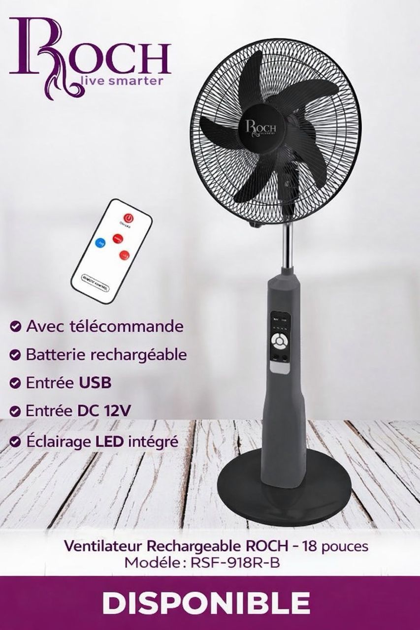 Optez pour le confort et la praticité avec ce ventilateur sur pied rechargeable de la marque ROCH. Idéal pour la maison, le bureau ou en cas de coupure de courant, il vous garantit une ventilation efficace à tout moment grâce à sa batterie intégrée.